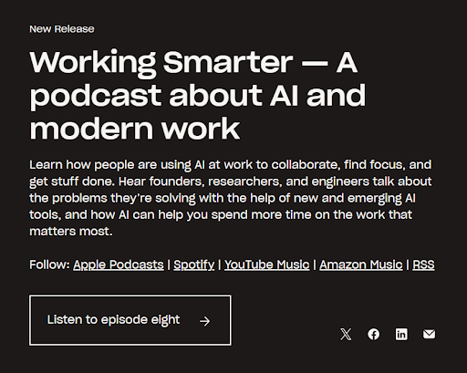 Dropbox’s “Working Smarter” podcast leverages employees as thought leaders, providing practical AI insights to engage and retain customers. By blending utility with infotainment, the series makes complex topics digestible while reinforcing Dropbox’s role in modern work. This approach turns employees into influencers, delivering value-driven content that builds trust and strengthens long-term customer relationships.
