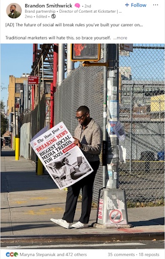 Did you catch Hootsuite’s Social Media Trends 2025 campaign? The brand enlisted 10 influencers, primarily on LinkedIn, to share photos featuring themselves holding comically oversized newspapers with the campaign’s headline on the front page. While the 10 paid influencers made an impact, the campaign quickly gained traction with additional organic influencers, causing it to go viral. Within just 24 hours, the campaign garnered 50 media mentions and over 5,000 engagements. Want to dive deeper into the details? Check out the full story in Adweek.