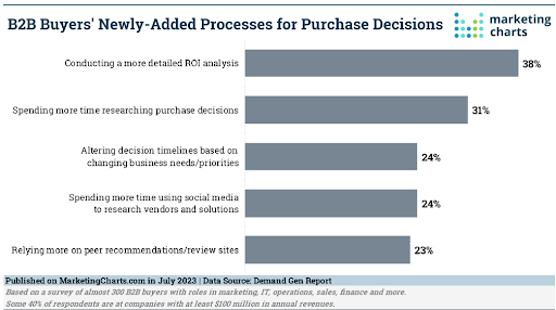 A report in 2023 found that significant numbers of B2B buyers were conducting more detailed ROI analysis while also spending more time researching purchase decisions on social media and elsewhere.