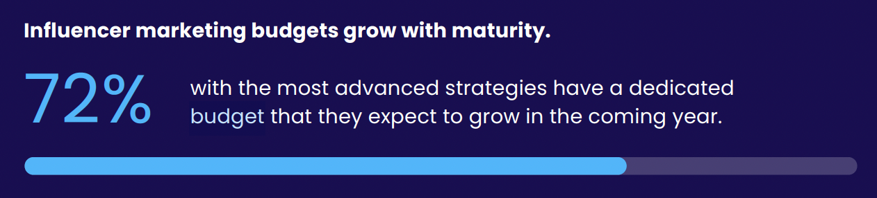 The more advanced the program, the greater the budget optimism. Among companies with the most mature influencer strategies, 72% expect their budgets to grow in the next year.