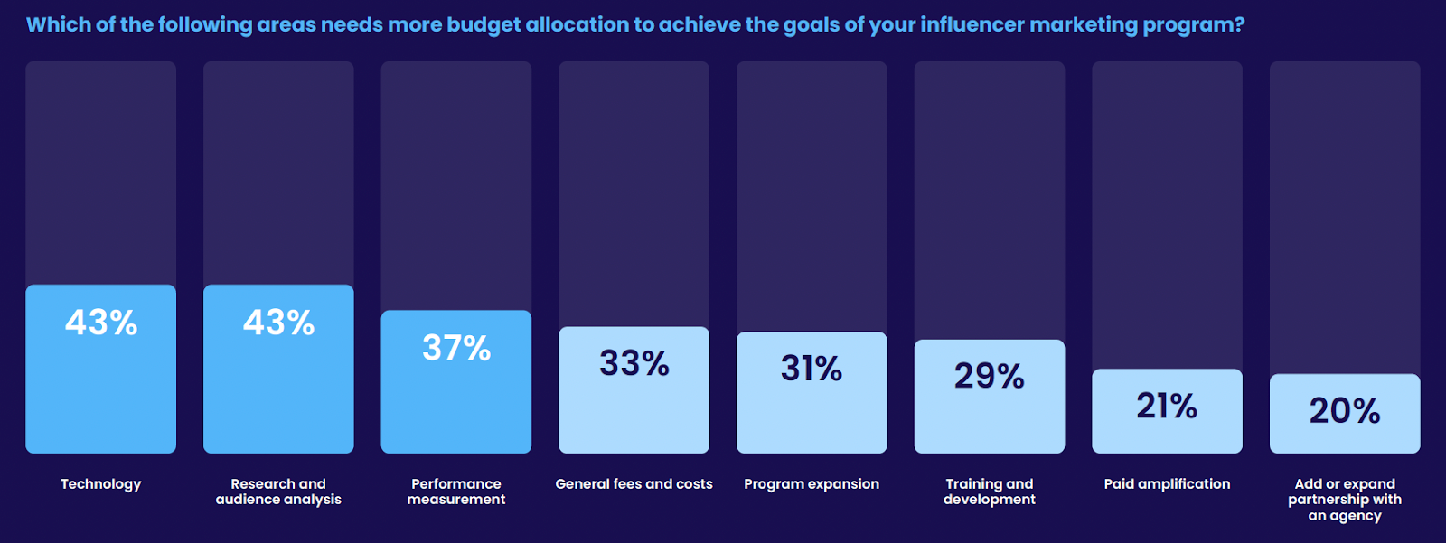 Training and development (29%): Ensuring internal teams and influencers are equipped for success is a key investment.