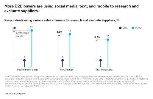 Your audience sees social media as a great source of intelligence as well. McKinsey has found that B2B buyers lean heavily on social media as a source of brand and product information.
