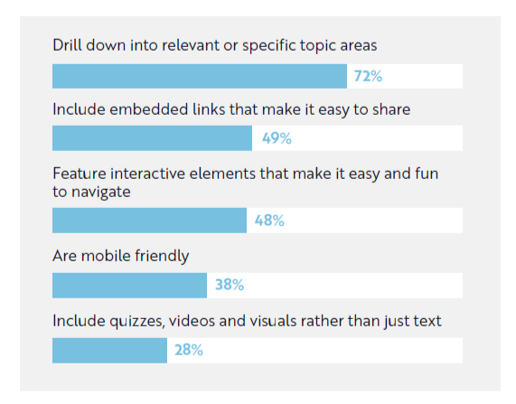 72% of B2B buyers say they are most likely to engage with content that drills down into relevant or specific topical areas. (Demand Gen Report)