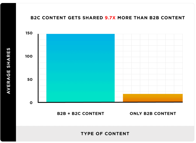 The average B2C blog post gets 9.7X more shares than a post published on a B2B site. (Backlinko)