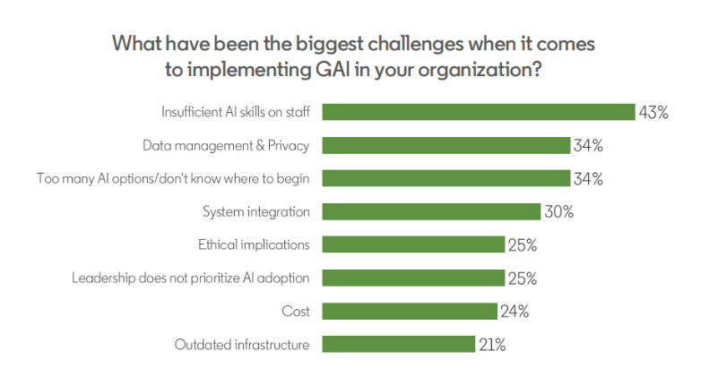 43% of B2B marketers cite insufficient AI skills as a barrier to implementing GAI in their organization. (LinkedIn)