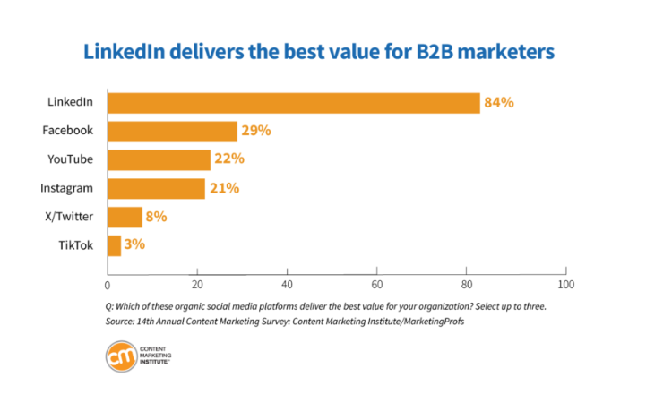 84% of B2B marketers say LinkedIn is the social media platform that delivers the best value. (CMI)