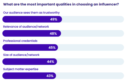 More and more audiences rely on influencers to help guide their purchasing decisions – but brands often only see meaningful results from influencers who have one key quality: trustworthiness. And marketers agree; research from our 2023 Influencer Marketing Report found that this trait is most important when choosing an influencer.