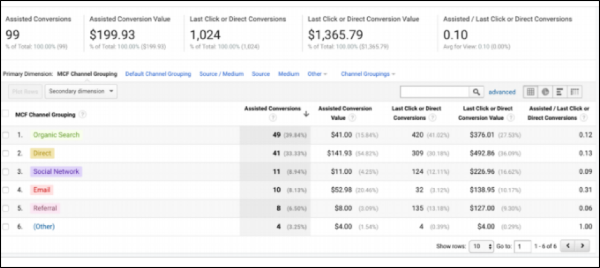 Slightly more advanced, assisted conversion attribution demonstrates the interaction that leads to the conversion (or last-touch). This helps demonstrate the value of an omni-channel approach and how it impacts conversions.
